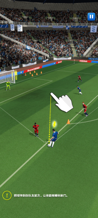 5、把球传到队友前方让他能够快速射门。