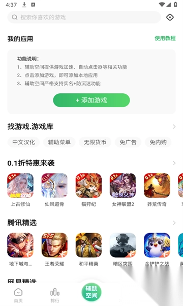 6、该程序有辅助空间功能,可提供游戏加速、自动点击,支持一台设备多开游戏或账号、游戏挂机等。