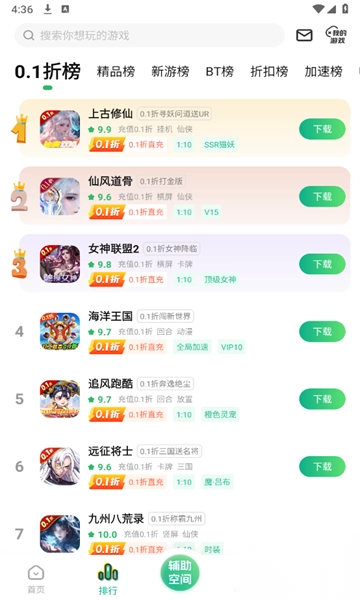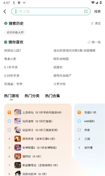 5、热门游戏:涵盖《天天酷跑》《穿越火线》《火影忍者》等众多热门游戏。