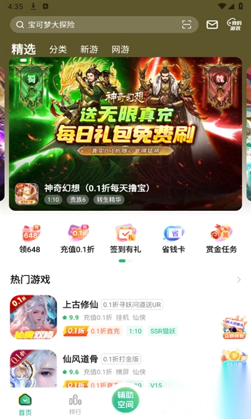3733变态手游盒子正式版堪称一款极为出色的游戏盒子,其内部游戏资源丰富得超乎想象,无论是充满刺激的冒险类游戏,还是动感十足的动作类游戏,亦或是烧脑的解密游戏以及锻炼思维的益智游戏等,各类游戏应有尽有,能够充分满足不同玩家的多样喜好。
