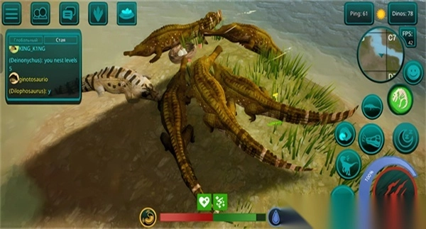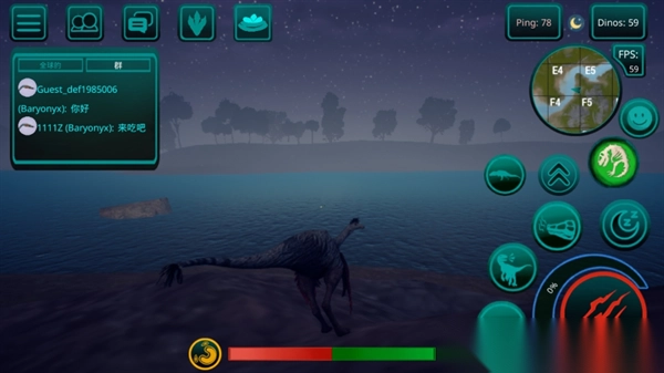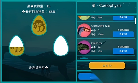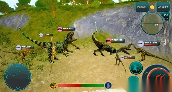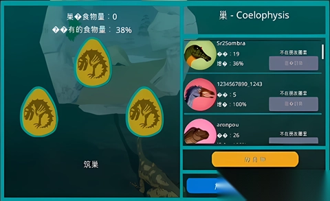 3、获取食物:若恐龙为掠食者,需猎杀其他玩家操控的恐龙来获取肉食;若为草食动物,获取食物相对容易,只需寻找特定的蕨类植物,就能得到充足的食物。地图上的任意湖泊、水库皆可作为饮用水源。