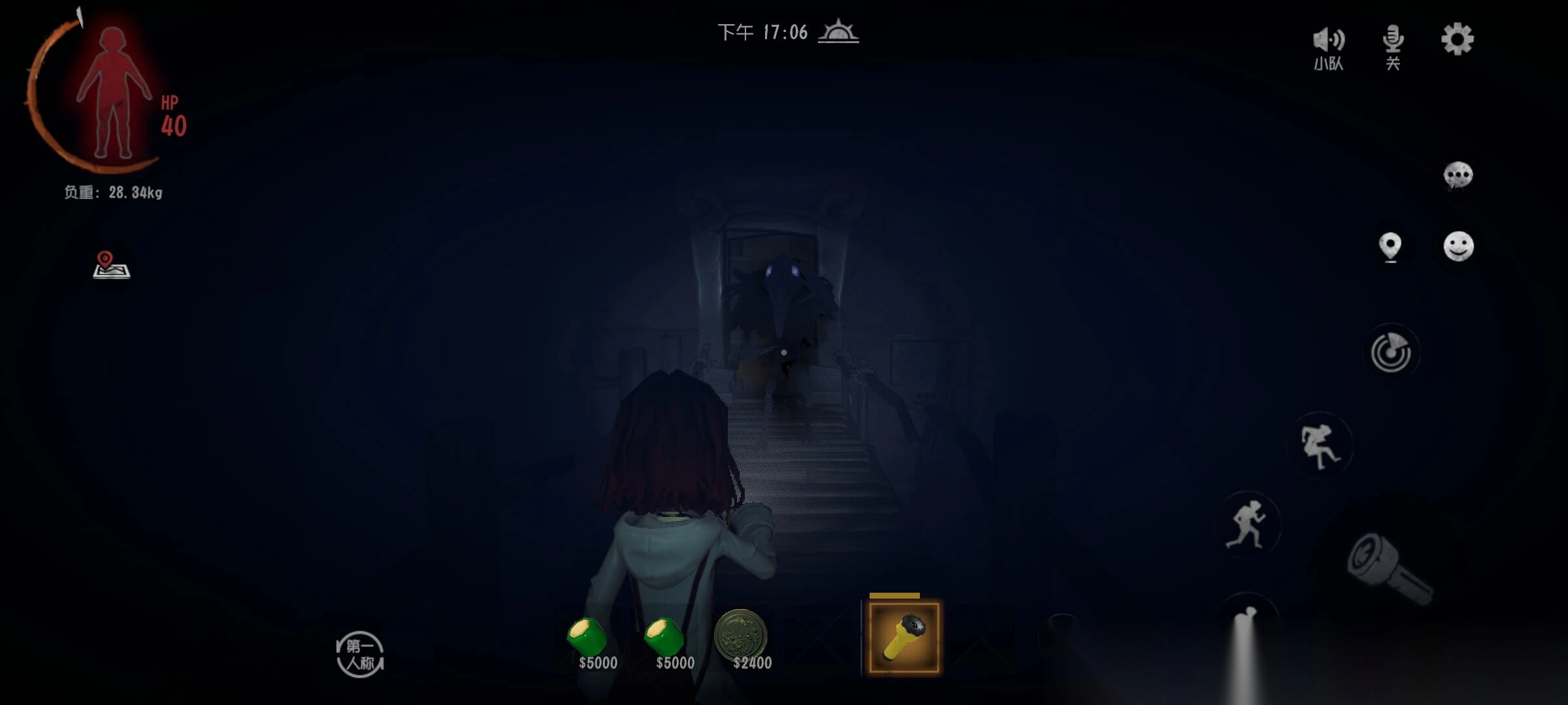 4.鬼新娘:出现时灯光闪烁且有笑声,闪现移动靠近后会将玩家带走,加速可脱离范围,不可消灭