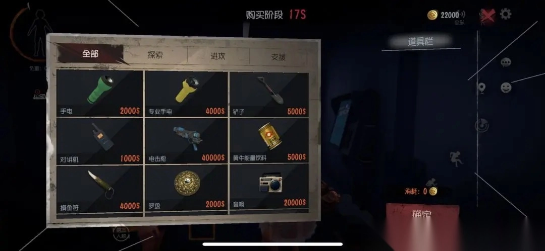 道具系统:玩家可以购买手电筒、铁铲、对讲机、电击枪、功能饮料等道具,准备充足,才能应对未知风险哦~