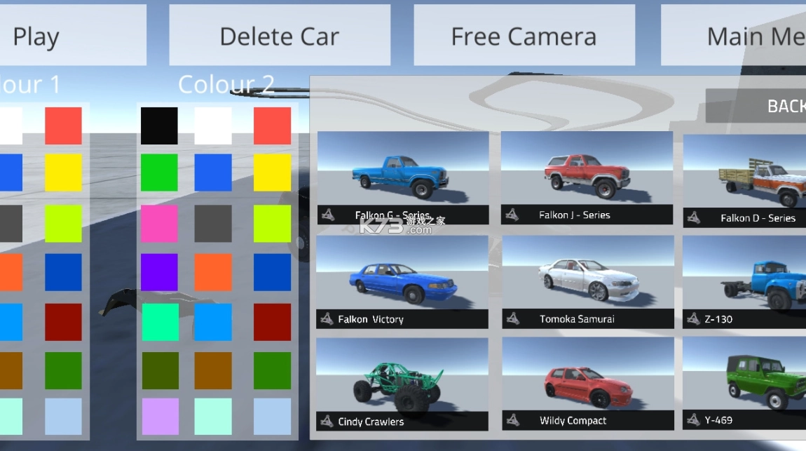 玩家能在这里选择各种不同的车型进行驾驶体验,你可以在各种崎岖的道路中自由的进行高速行驶。如果在辛迪汽车驾驶游戏中发生车祸,车辆将在真实的物理引擎下被破坏、解体,你可以一键扫除这些残骸,然后换一辆车继续你的驾驶体验。