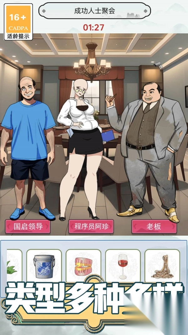 2、拥有多种主题场景,涵盖奇葩订婚、成功人士聚会、八仙过海等,每个场景都有独特的故事和解谜任务。