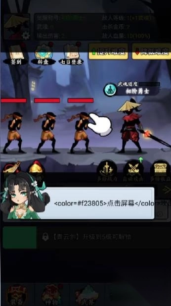 4、向门派或敌人发起挑战,获胜后获取装备与秘籍,以此强化角色。