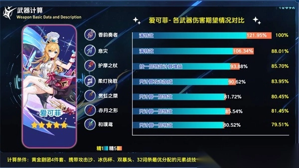 1. 角色适配策略:优先为像爱可菲这类角色进行装备配置(基于伤害对比是最优选择)。依据武器“潜红之愿”具备的后台增攻以及治疗联动特效,挑选那些依赖后台输出与治疗的角色,从而将该武器特效的收益最大化。