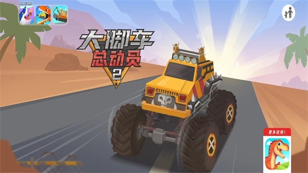 大脚车总动员2手游是由 Yateland 设计的一款赛车竞速类手游,该游戏主要的面向目标人群为2-8岁的儿童,在这里你可以驾驶炫酷的大型卡车来完成多人竞速体验!超12款车型的丰富选择,10余种不同地图的地形探索,不仅有雪景、沙漠,城市干道,还是火山、美国西部,宇宙空间站等等,配合简单的操作控制,使得玩家更容易上手。