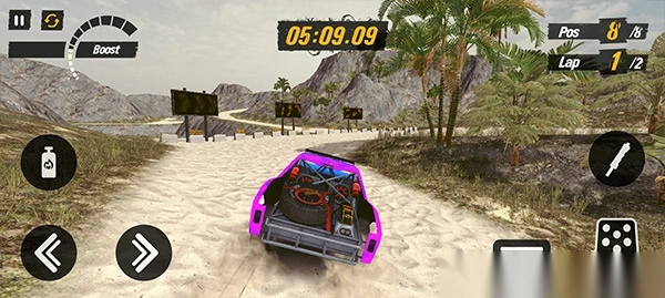 4、进入到游戏中之后,左下角的按键分别是控制越野车的方向按钮,方向上方的是控制车辆的喷气加速的按钮;