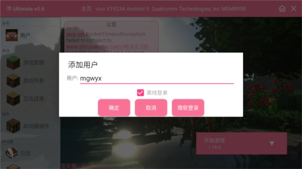 3、添加一个用户名,注意要用纯英文或者数字id,勾选离线登录,然后点击【确定】