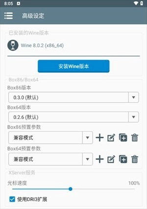 2、还能够开展一系列高级设置,像Box86版本、Box86预置参数、光标速度等。