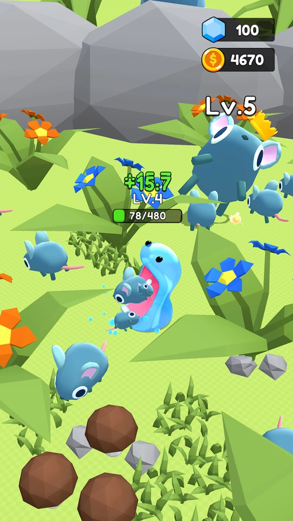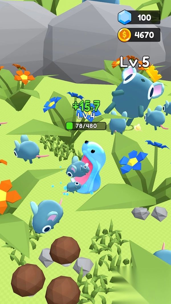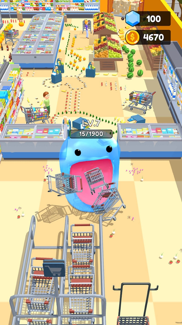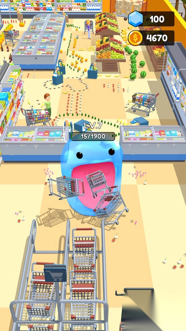 1. 借助摇杆操控橡皮怪物移动,轻点屏幕拉伸其身体,长按则可吞噬物体。