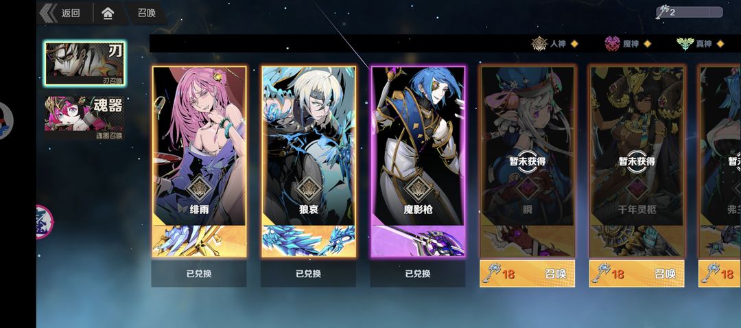 ②完成新手剧情通关后,建议抽取一名自己心仪的角色。游戏运营相当大方,第一天就发放了大量兑换券与抽奖券,助力新手前期开荒。在此推荐兑换狼哀(左二),其次是绯雨(左一)。这两位刃从操作难度和强度来看都十分值得推荐,玩家能迅速熟悉角色技能,施展进阶操作。而且这两个刃同属一个体系,更易达成良好的配队效果,让角色切换更为流畅。