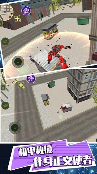 2、左右操控,左手操控机甲战士,右手操控跳跃攻击,需灵活进行操作。