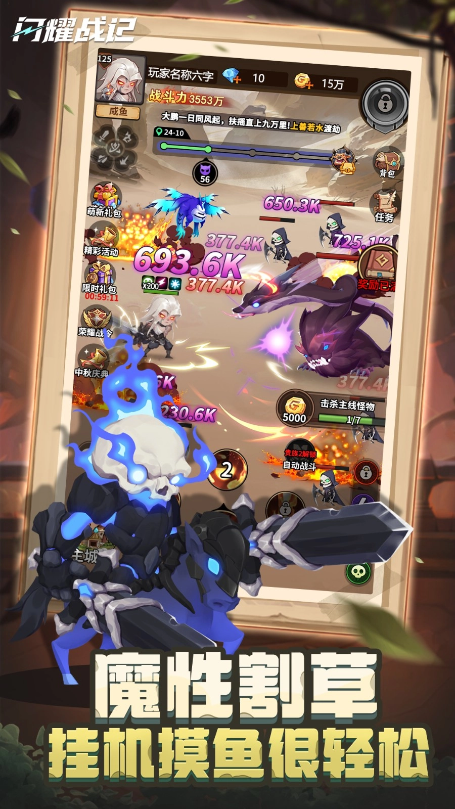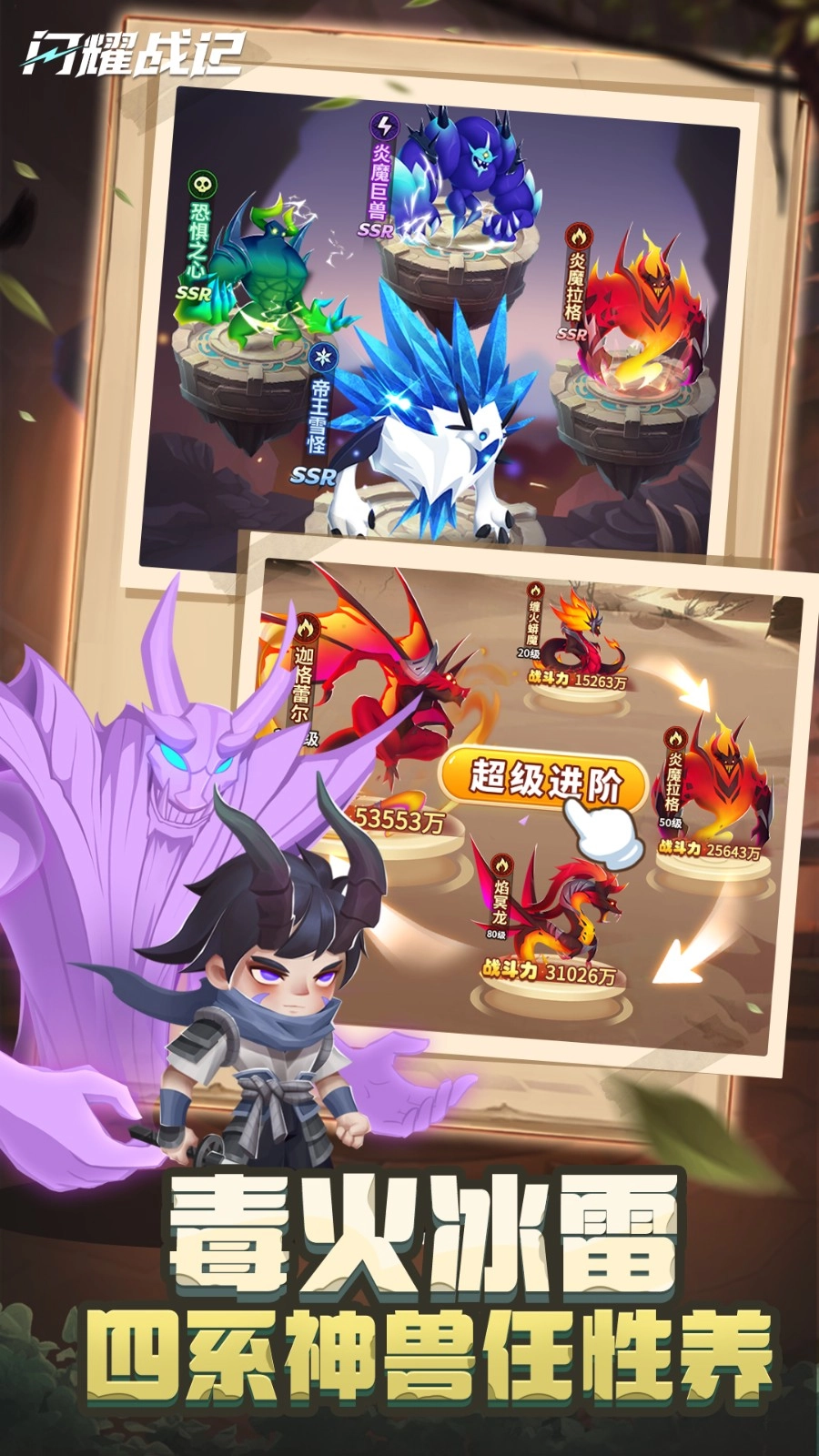 刷刷刷,爽翻天,暗黑魔性刷子玩法就在《闪耀战记》!随机地形搭配迷雾大冒险,四系异兽前来助力参战,技能强大仿若直抵天际,割草战斗轻松爆出全套神装!真正的肉鸽玩法,带来十足刺激体验,轻度烧脑,简单策略,超级耐玩,一旦上手就根本停不下来!