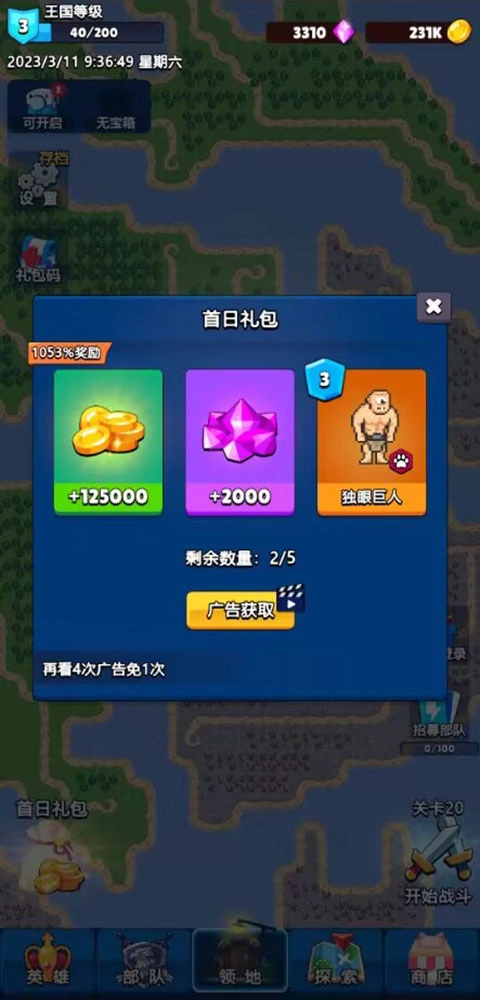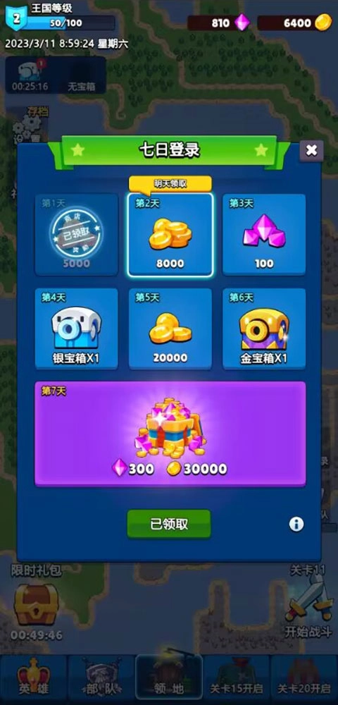 在开启自动战斗前,先领取游戏给出的免费福利,如此便能更迅速地刷取关卡与副本。