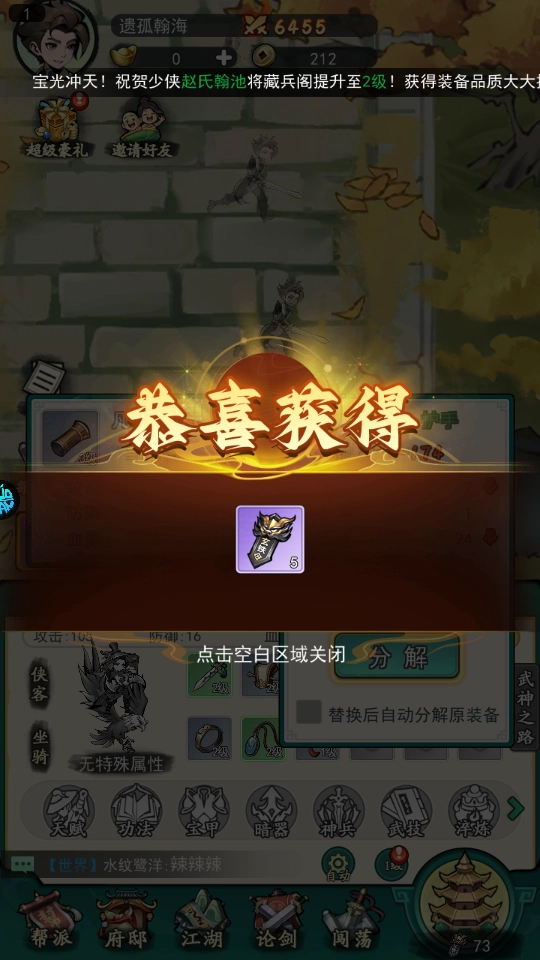3、拆解多余装备,可获取铜钱与各类材料。