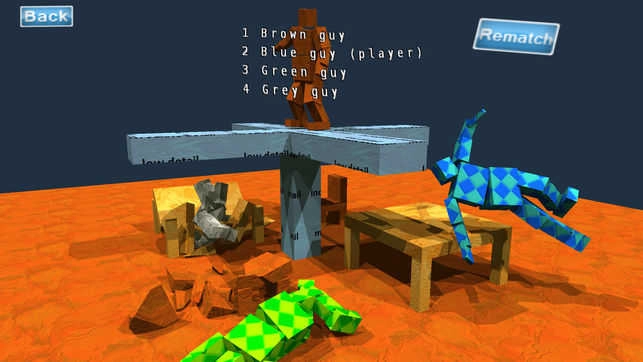 在这款以3D物理效果为主打的模拟游戏中,你需要将对手打翻,或者迫使对方离开这个圆圈,才能赢得比赛。