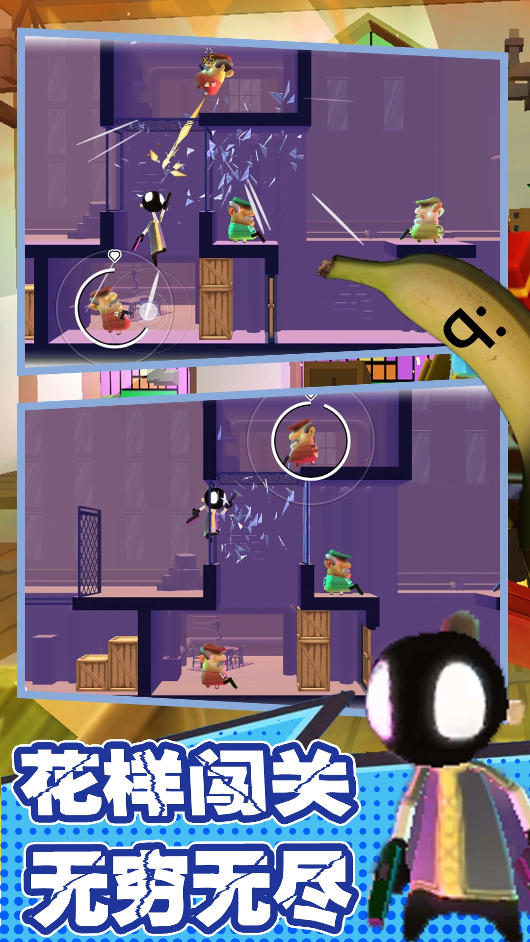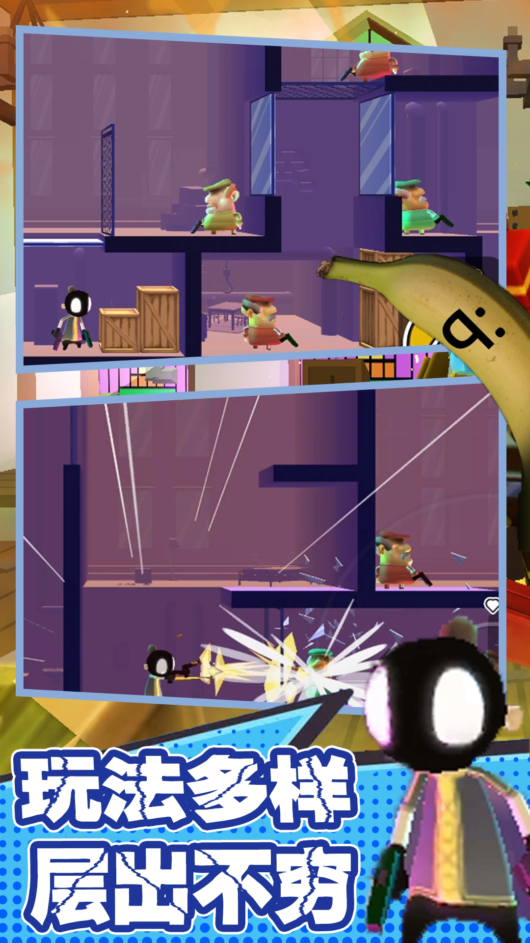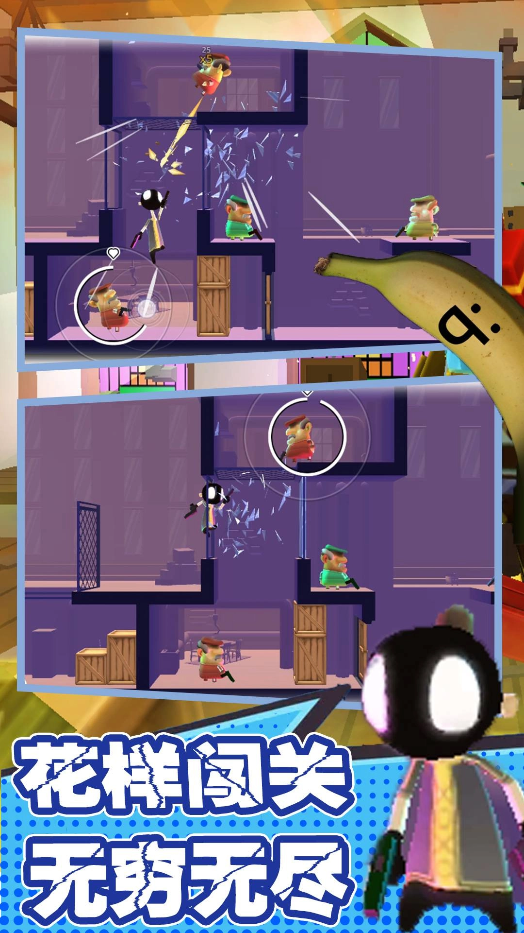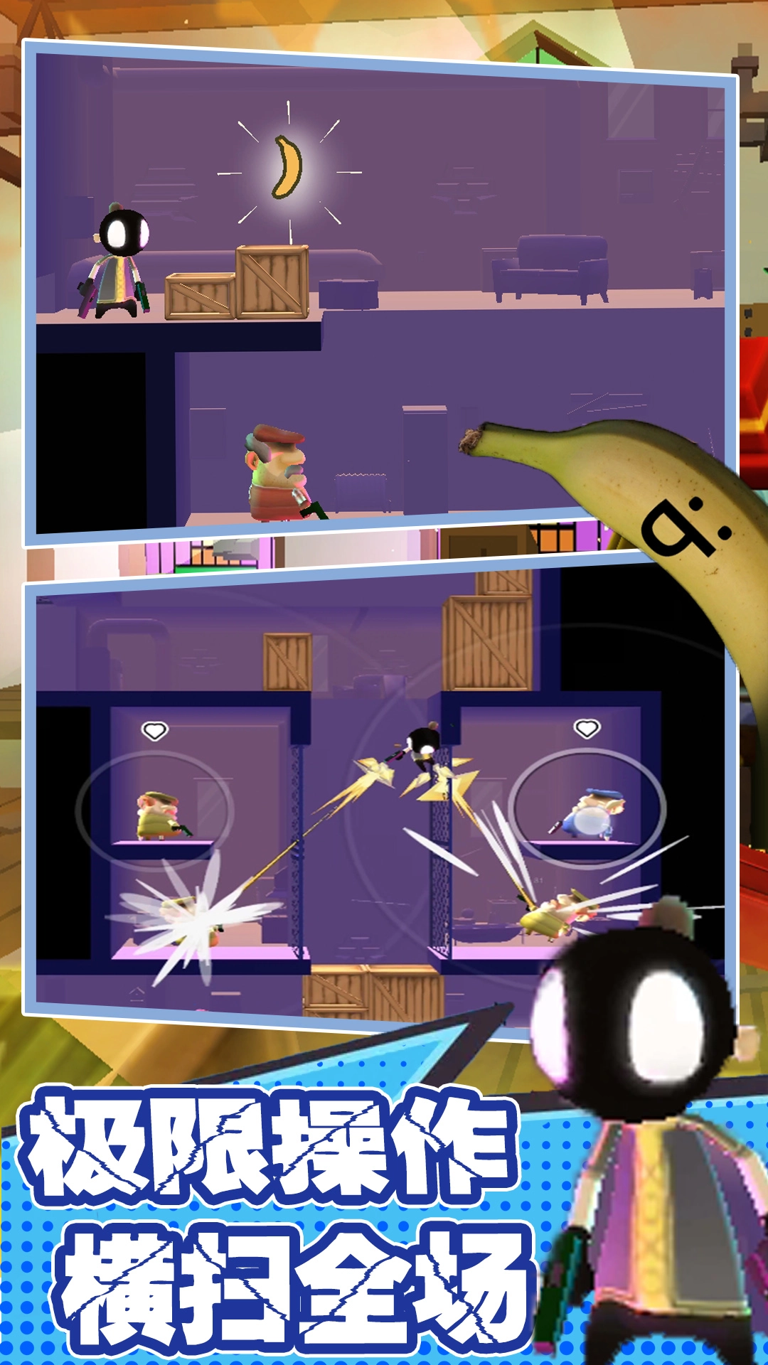 在这款游戏里,玩家将化身为主角佩德罗。佩德罗的家人不幸惨遭杀害,仇恨在他心中熊熊燃烧。此时,在神秘香蕉的助力下,佩德罗毅然踏上了复仇之路。而身为玩家的你,唯一的目标便是打败那个终极 BOSS,实现命运的逆袭。游戏剧情节奏紧凑,任务清晰明了,再搭配上每一关紧张刺激的动作场景,让玩家仿若置身于一部精彩绝伦的“动作大片”之中。