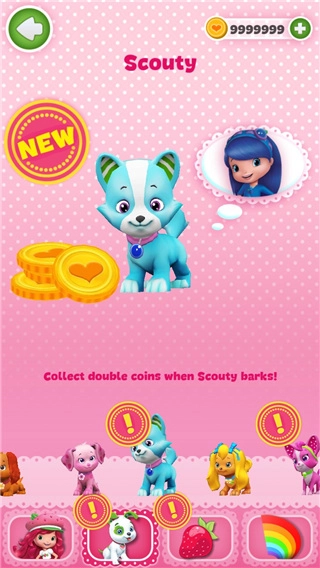 3、Scouty,这是一只蓝色的小狗,要解锁它需要3450枚金币。与它对应的公主身着蓝色衣服,头发也是蓝色的。当Scouty和这位公主在一起时,我们所获得的金币会翻倍。