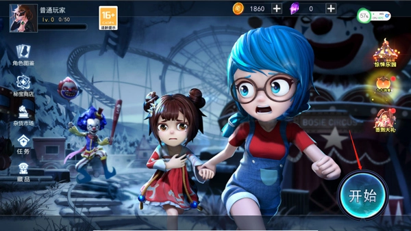 4、接下来便能够进行角色选择,玩家等级越高,可解锁的角色数量越多。在界面右侧还能添加道具,一切准备就绪后,点击“开始游戏”即可。