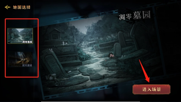 3、随后能够自行挑选地图,新手通常有凋零墓园与寂灭遗迹这两种地图可供游玩,在此我选择凋零墓园,点击后进入场景。