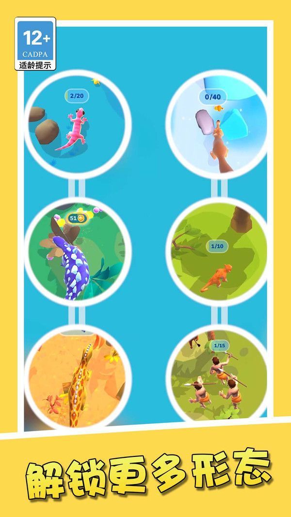 丰富多样的吞噬进化玩法,涵盖从小鱼至恐龙等各种形态,一应俱全。