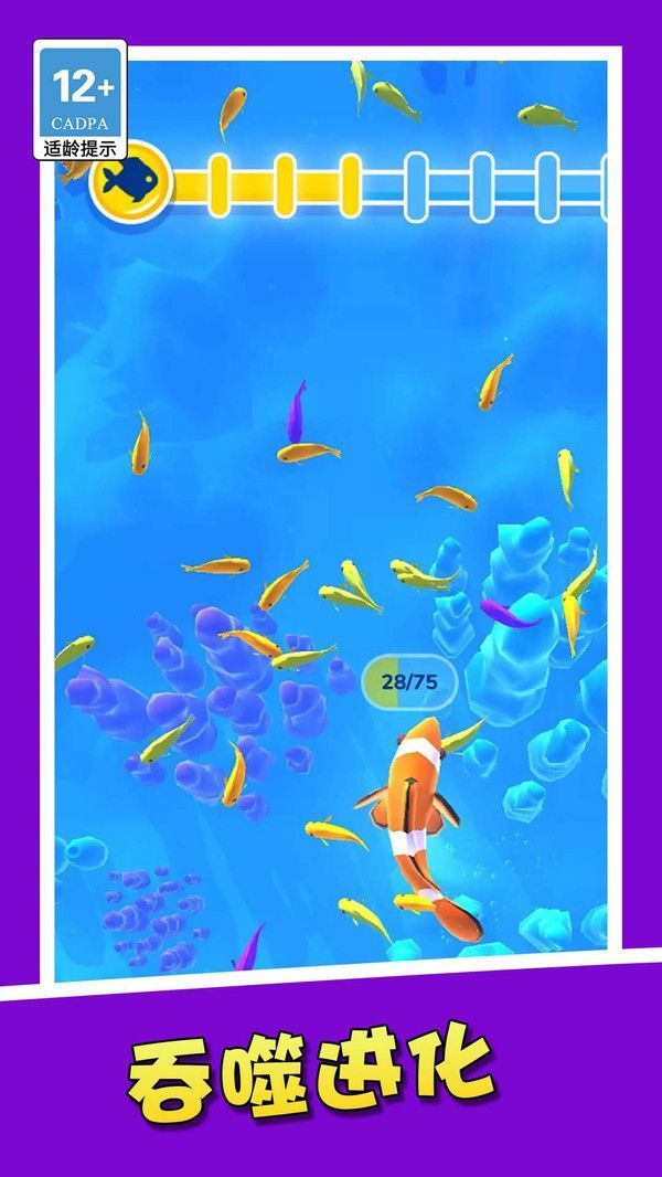 当经验值累积至临界点,玩家操控的角色便会迎来进化,进而能够吞食体型更大的鱼类。