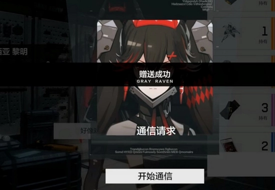 5.赠送成功会有对应的提示,同时也会进入通信状态