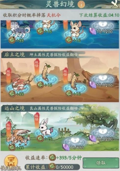 下面这些图片展示的是我的灵兽栏以及活动状况。其中,大部分灵兽是我在刷灵狐时,碰到属性匹配但品质不佳的灵兽,便将其妥善保存起来。如此,等到第二天确定灵兽幻境开启,你就能迅速打开对应的格子,把相同属性的灵兽放进去,随后将多余的碎片全部点击挂机。这样一来,你就能以最少的花费,通过最合理的方式,比别人更快一步达成你期望的排行。