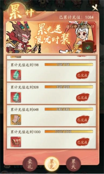 请牢记充值豪礼中的累计充值部分。