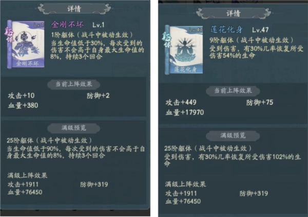 躯体方面,若想保命,推荐选择金刚不坏或莲花化身;要是想叠加伤害,那就选用大邪魔。