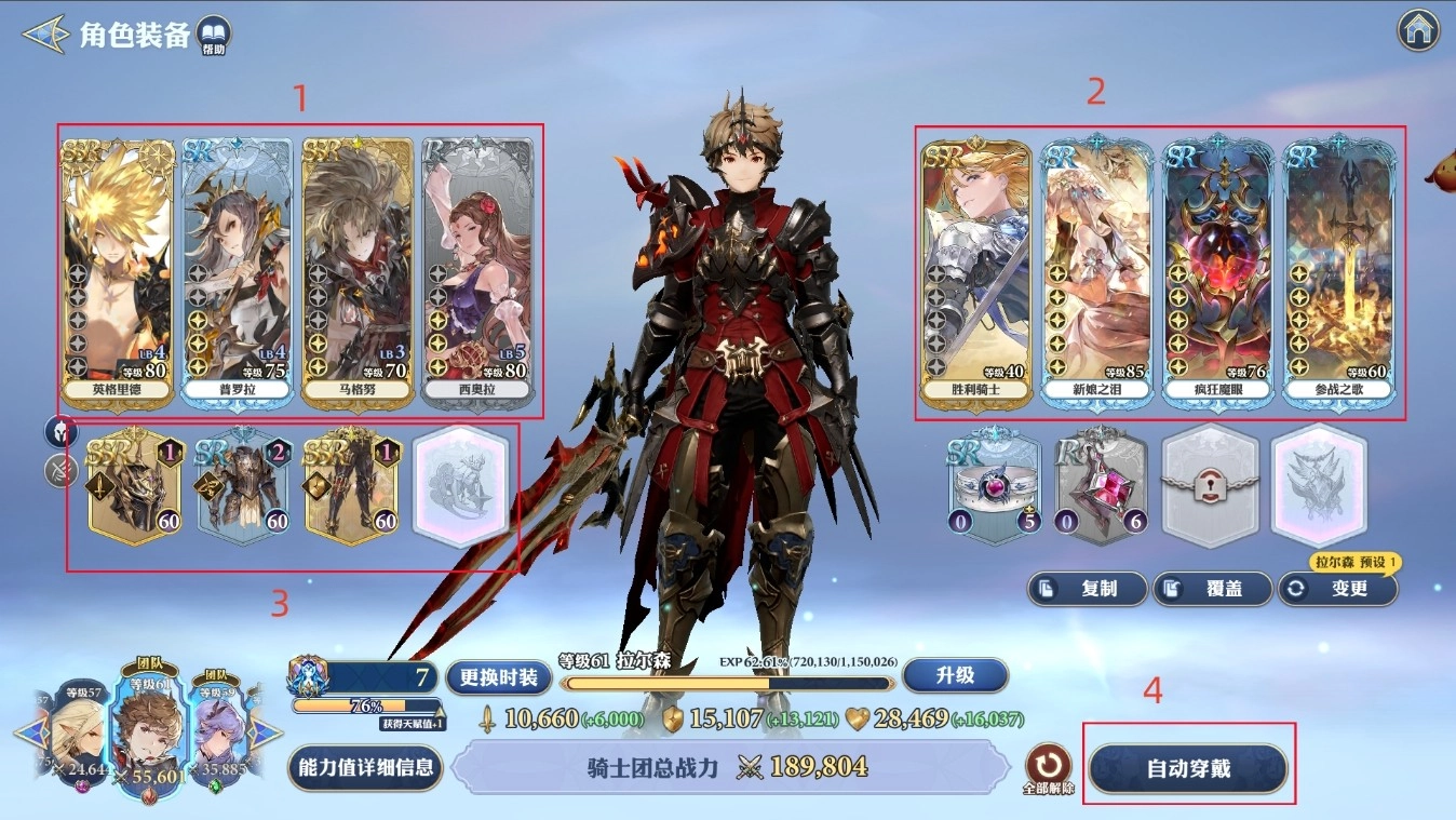 4) 自动穿戴:基于高战力标准自动进行装备穿戴