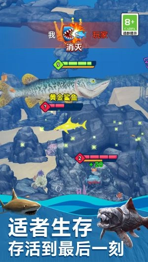 策略性生存挑战:玩家得巧妙借助海洋环境,躲开危险生物,挑选恰当的目标来吞噬,还要留意维持生命值,这让游戏的策略深度得到了提升。