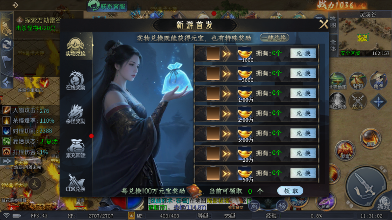 实物兑换、在线奖励、杀怪奖励等超多福利正等待你的领取,海量元宝与丰厚经验奖励将助力你快速成长。
