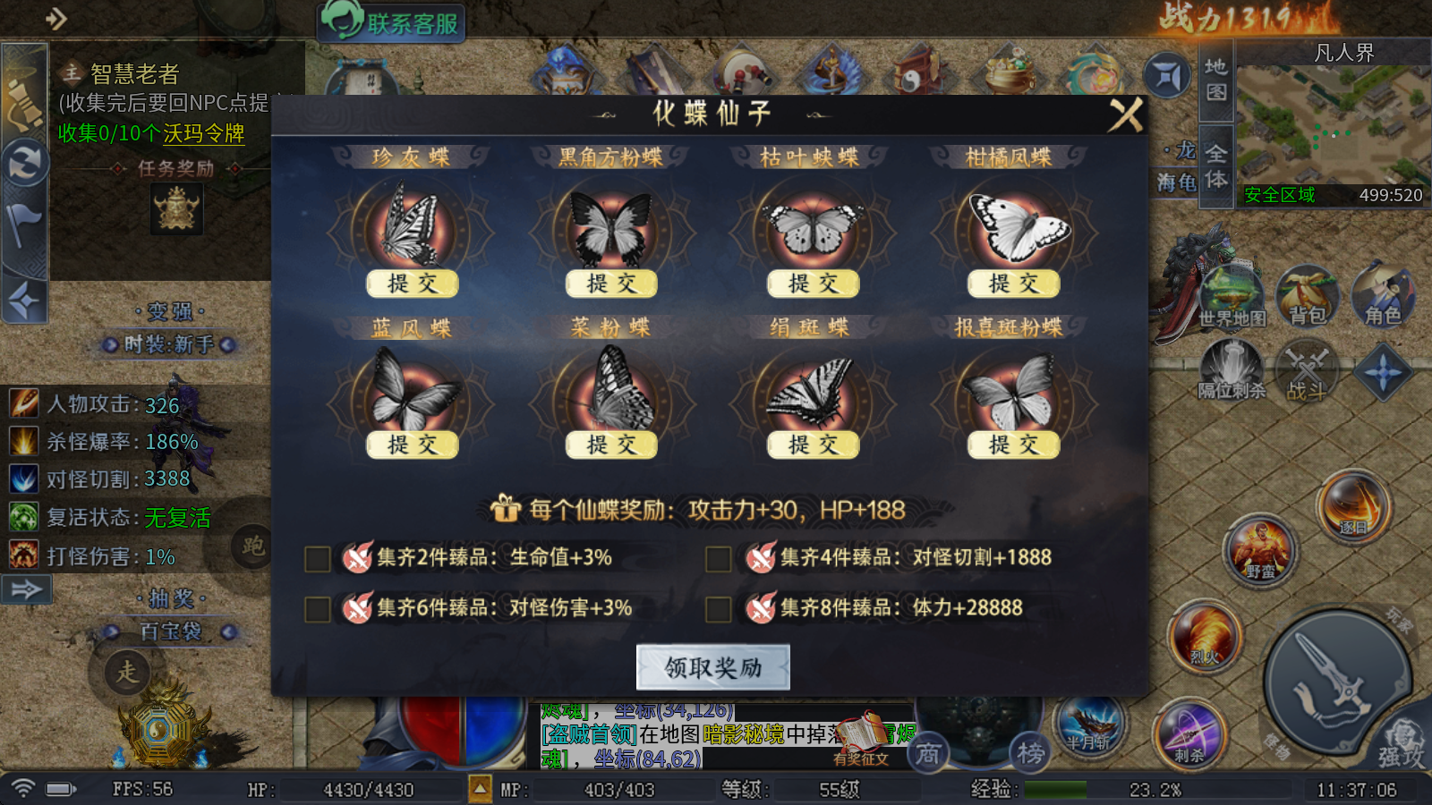 化蝶仙子玩法规则:收集仙蝶并提交,就能提升攻击力与血量;当激活2件、4件、6件或8件仙蝶时,还将解锁额外属性加成。