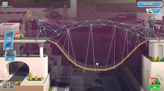 游戏采用现代微缩模型风格作为美术核心,构建出一个兼具写实感与童趣的沙盒建造空间。玩家将以桥梁工程师的身份,从无到有地规划、设计、搭建并测试各类功能不同、造型独特的桥梁结构,以满足载具通行的严苛要求。从单车穿越小溪的乡村场景,到多车并行的复杂城市高架,每一个关卡既是挑战,也是发挥创造力的平台。游戏不仅提供了自由度极高的建造工具和丰富材料,还融入了高度逼真的物理模拟系统。每一根梁、每一段缆索的选择与布局,都会直接影响桥梁的稳定性和测试表现。玩家需要综合考量材料强度、支撑结构、应力分布及动态载荷等因素,探索最佳解决方案。