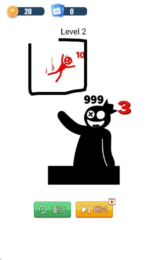 点击屏幕正中间那个红色的“挑战”按钮,火柴人就会马上出现在危险区域,与此同时倒计时也会开始跳动。