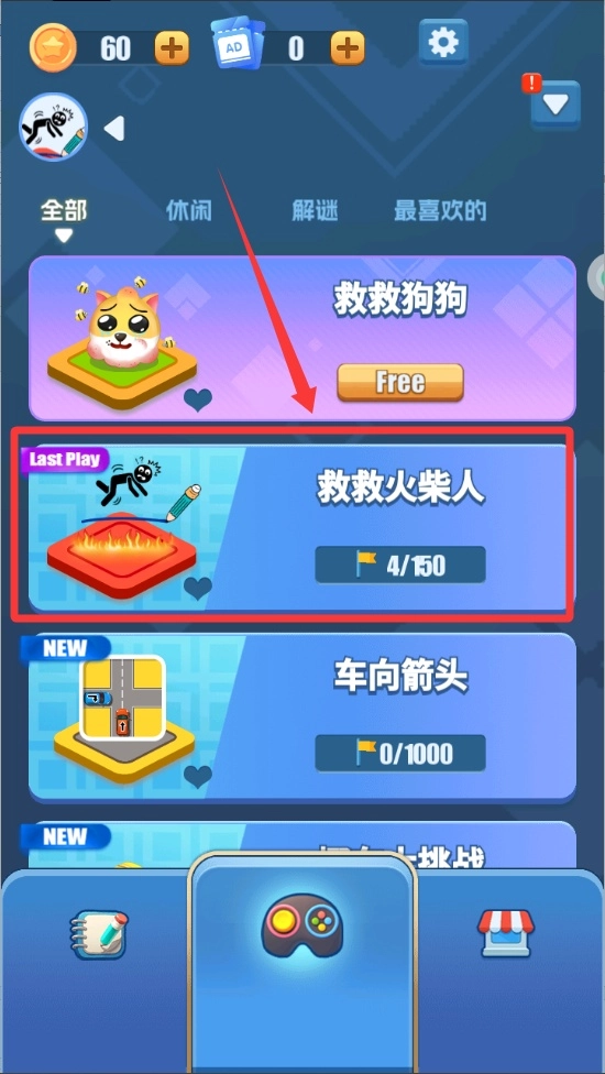 回到主菜单后,点击左侧第二个“救救火柴人”模式,进入该模式后,背景会切换为燃烧的火焰场景,以此来营造紧张的氛围。