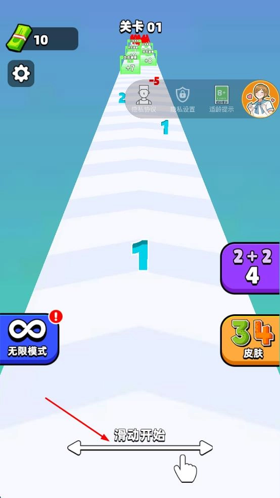 进入游戏关卡后,通过滑动操作启动游戏进程。行进时优先选择数字分布较为密集的路径,同时充分利用无限模式等辅助功能,以此快速积累数字来提升自身实力。