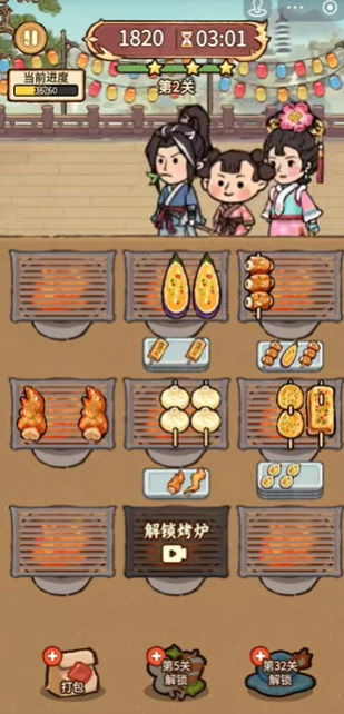 进入游戏后,挑选对应的关卡,留意一开始上架的烤串种类以及烤盘的数目。