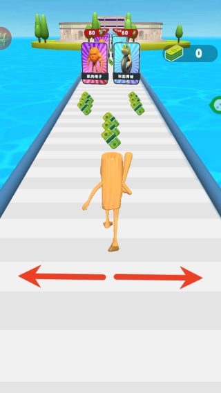 通过左右滑动操作来控制角色进行跑酷,借助跳跃动作避开障碍物,同时收集金币与卡牌类道具。