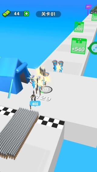 3、每一关的结尾都是最激动人心的时刻!你得指挥整个弓箭手军团发起强力冲锋,朝着关卡终点的标志物展开最后的总攻击。操作简单易上手,角色会在赛道上自动完成奔跑与射击动作。你只需专注于操控角色左右移动,灵活躲避各类障碍物即可。