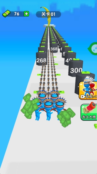 3. 简洁明亮的美术风格,配上满屏箭矢齐射的震撼画面,营造出清爽又刺激的视觉效果。游戏操作简单易懂,战斗场面却极具冲击力。关卡前期要以躲避障碍、稳妥地收集资源为主要目标,优先把队伍规模扩大。