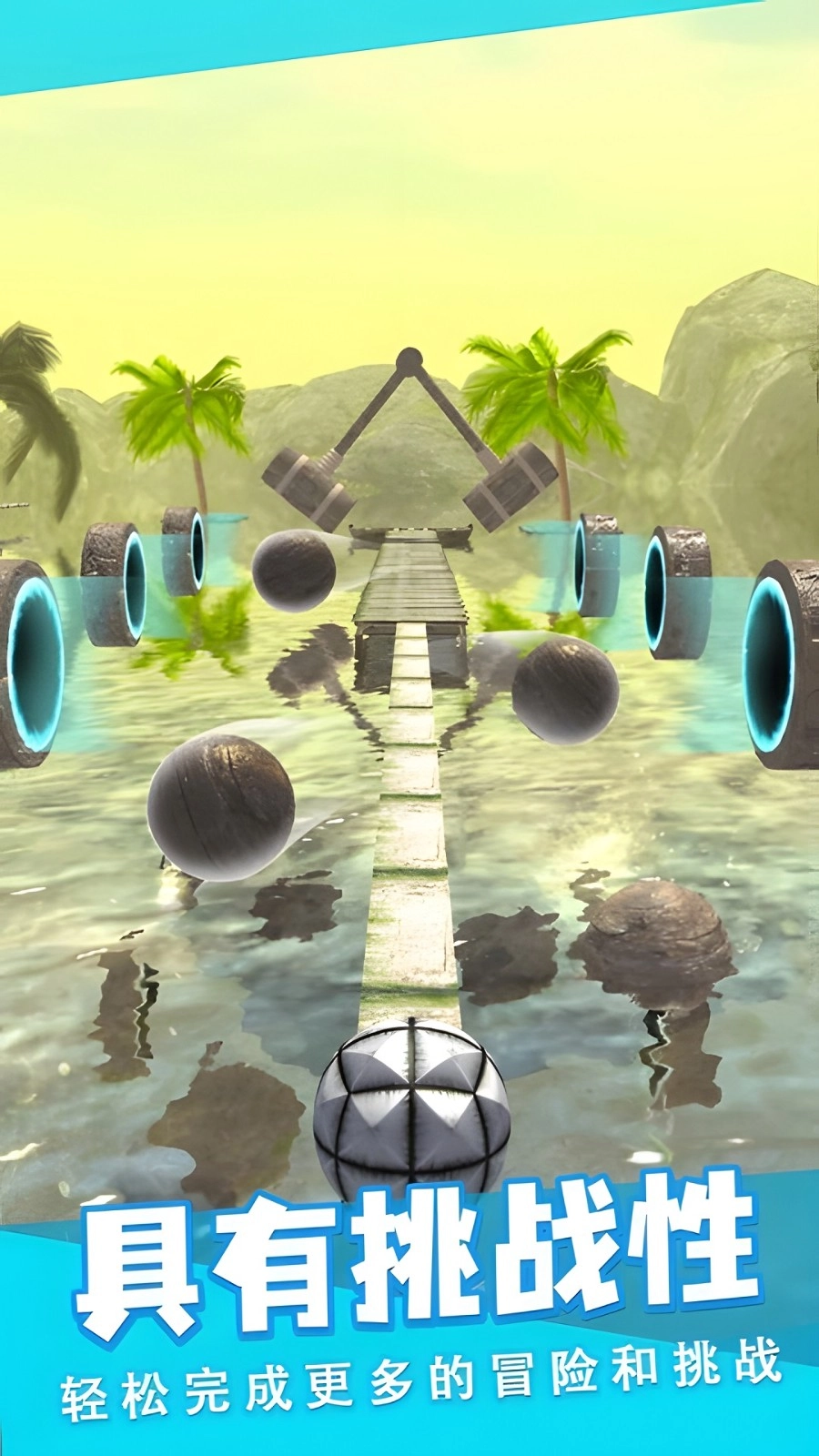 点击屏幕来操控铁球快速滚动,在各种坡道、桥梁等场景里维持平衡,避开障碍物不断前进。