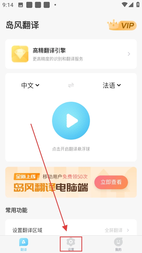 在软件的翻译页面中,点击底部的【设置】按钮,就能进入设置页面,查看各种设置选项了。