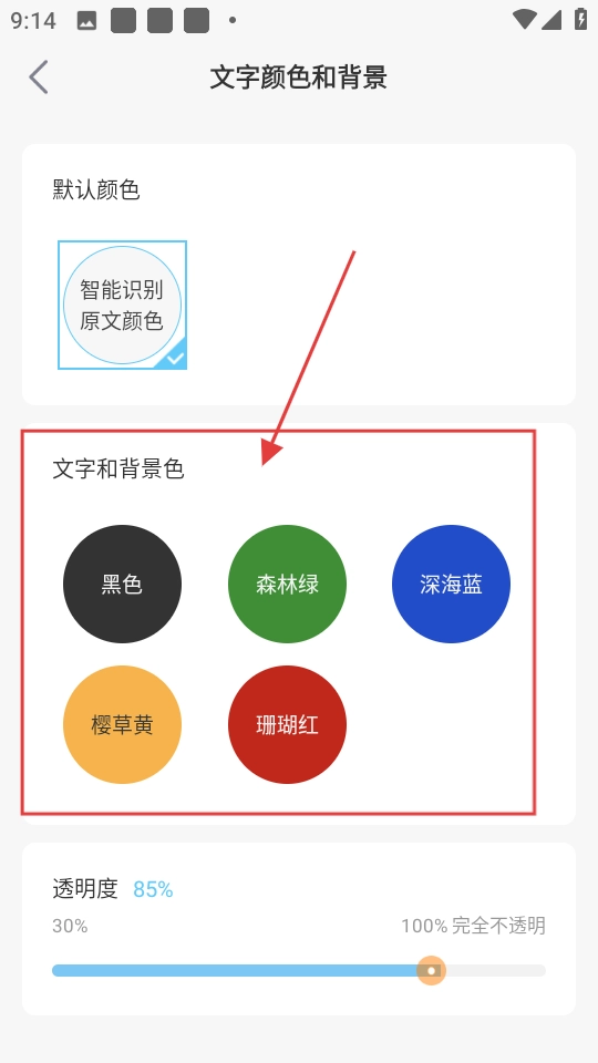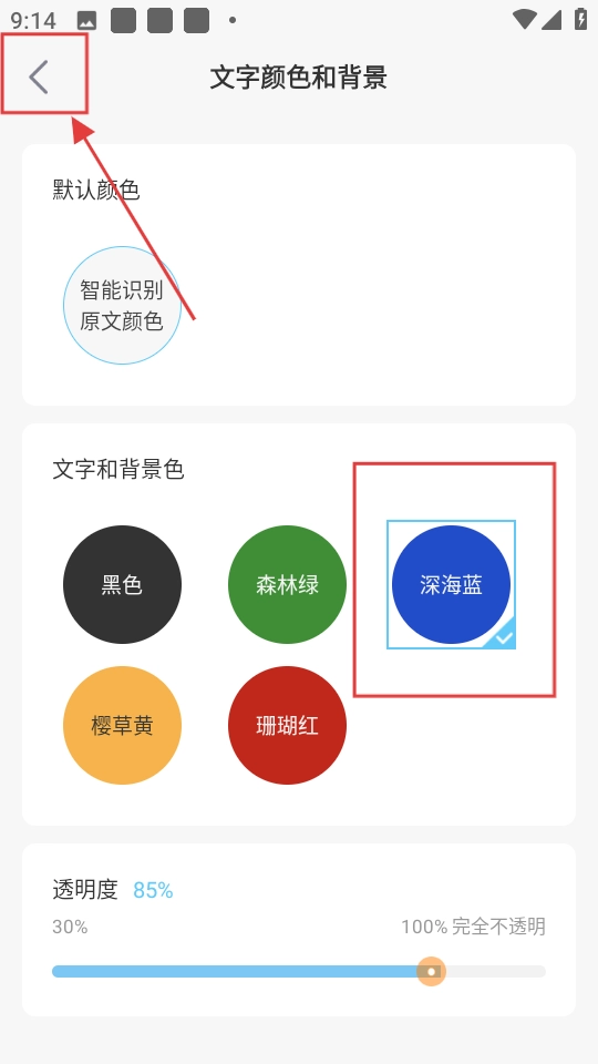 选定文字与背景色后,点击左上角的返回箭头,就能保存当前设置并回到上一级页面,这样就完成设置啦。