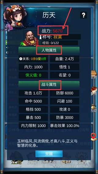通过查看【人物属性】和【战斗属性】,可以了解自身【战力-5670】等相关数值,后续可借助提升这些属性来增强实战能力。