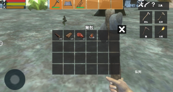 打开背包界面,查看自己已有的工具、武器等各类物品,及时了解资源的储备状况,以便对其进行合理的规划与使用。
