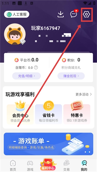 在游戏平台首页,点击底部的【我的】选项,就能进入个人中心页面,接下来就可以着手进行账号安全设置的相关操作了。